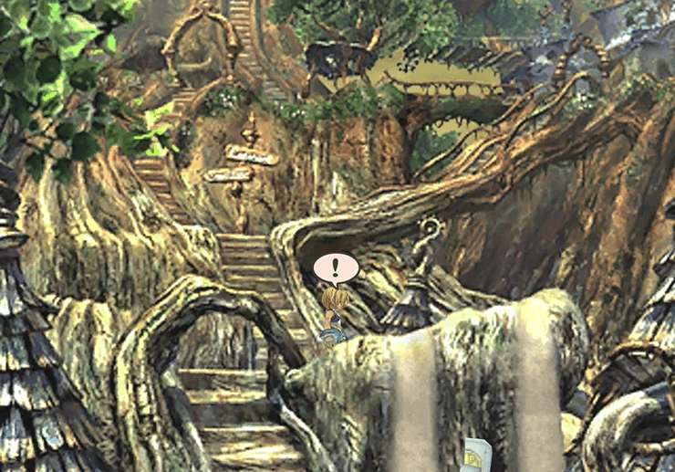 Follow Vivi back down to the lower level, and as you reach the bottom of the stairs, you will see a Moogle appear on the upper level. Travel back up and speak to Serino the Moogle to save your game and give him the letter from Mopli.