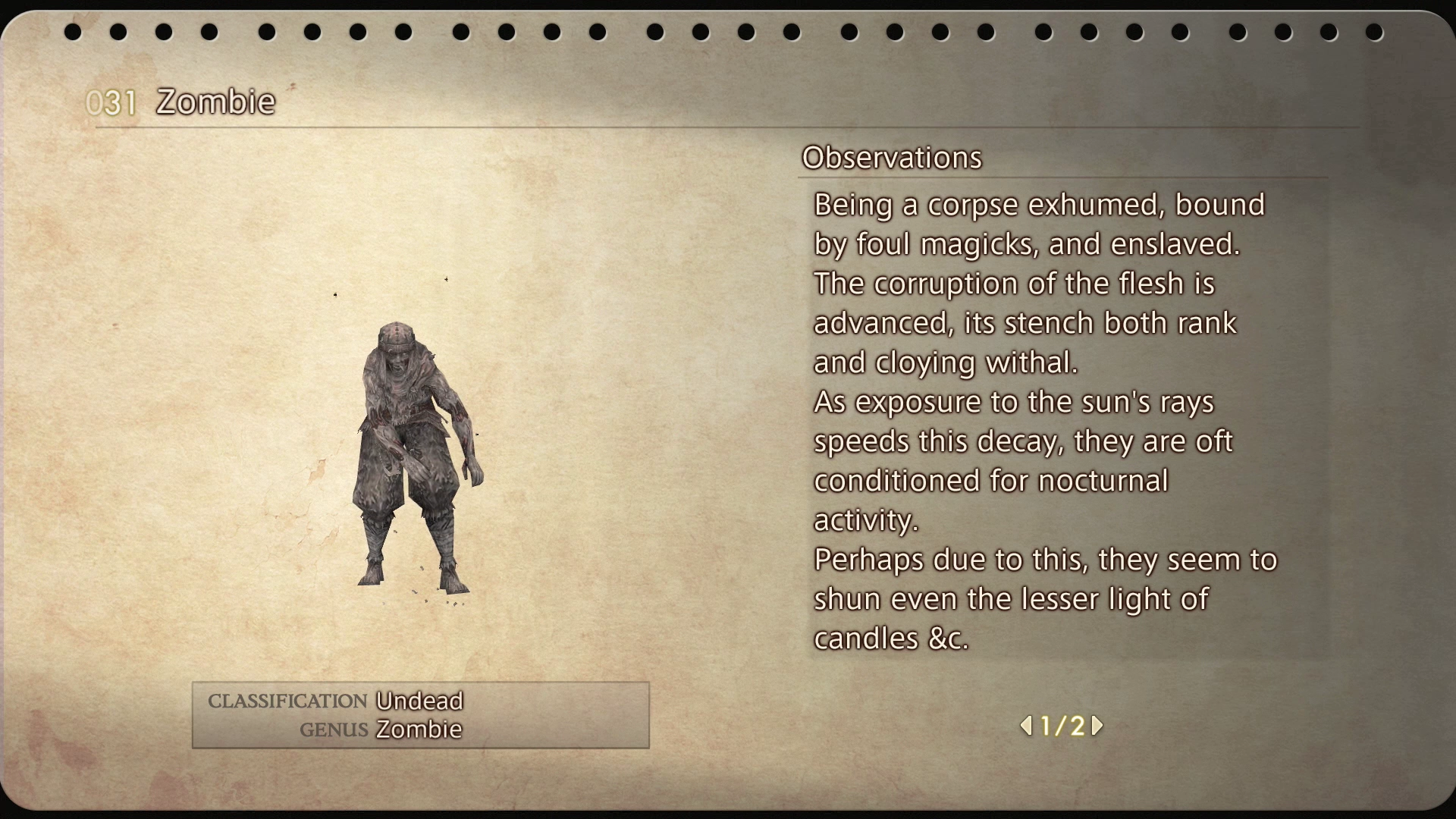 “Being a corpse exhumed, bound by foul magicks, and enslaved. The corruption of the flesh is advanced, its stench both rank and cloying withal.