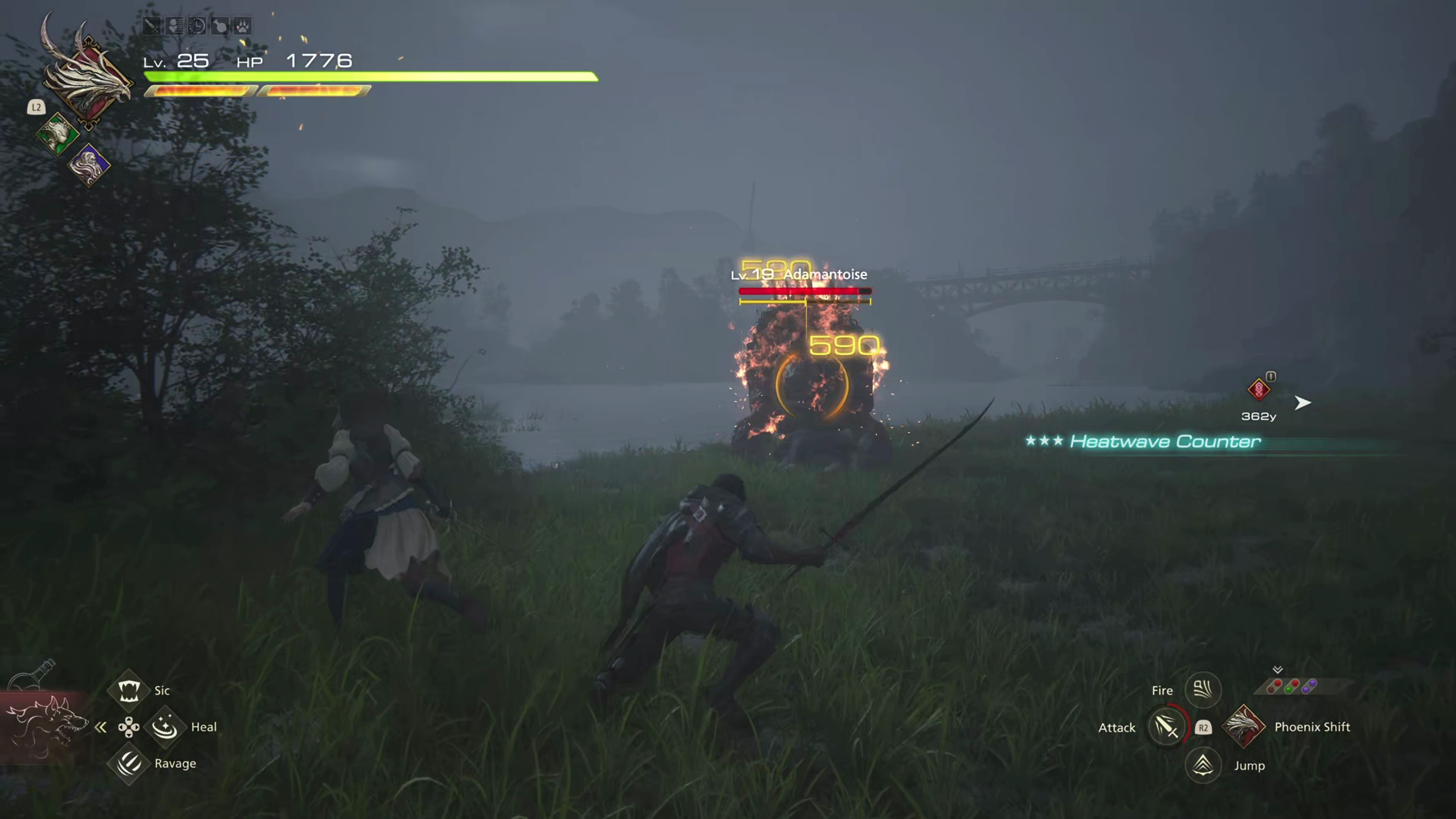 Melee Attack attacks before Clive falls back down to the ground. If the enemy’s health has depleted enough, you should be able to defeat it in time. To reiterate, the pattern is: