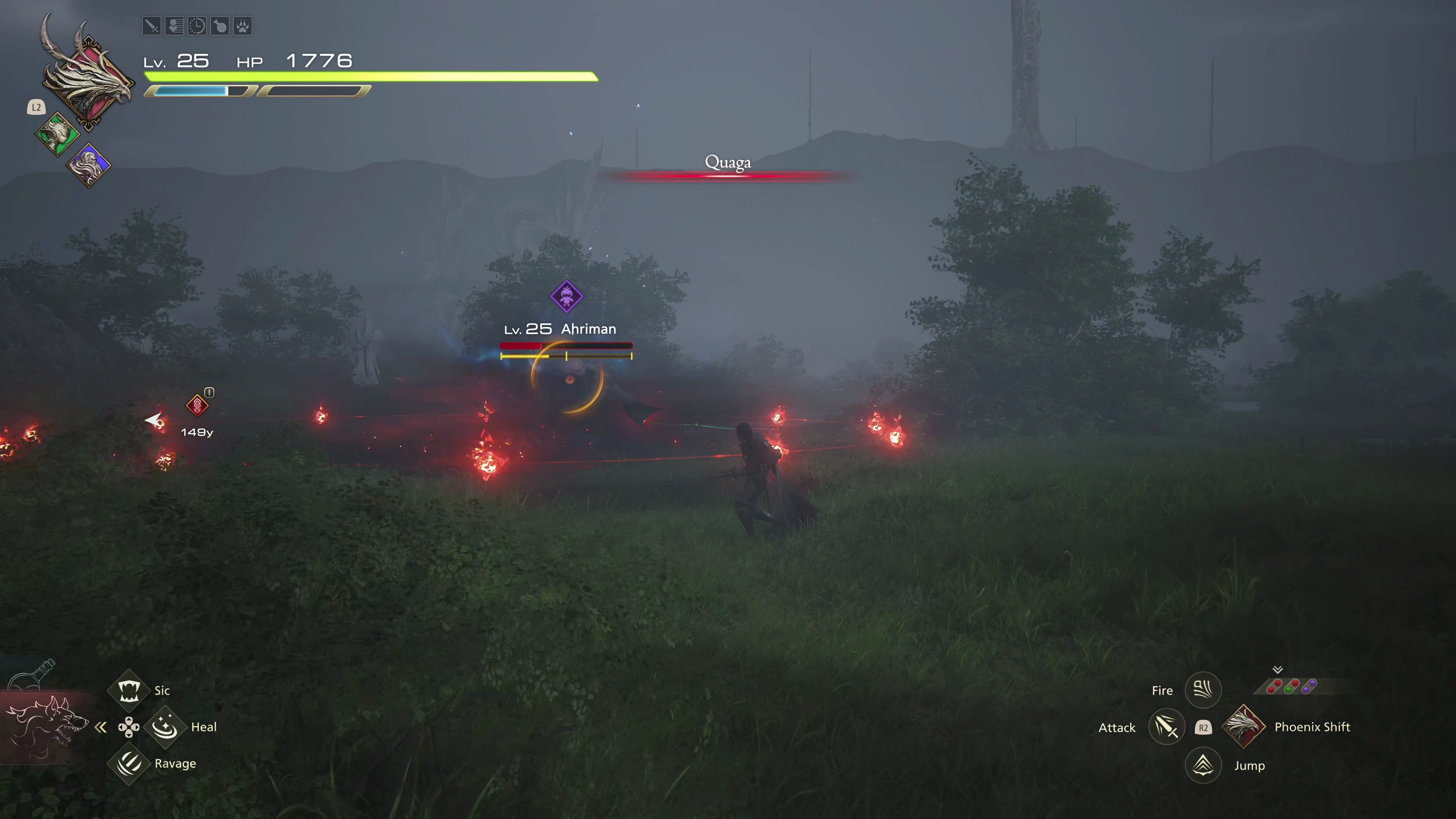 - Dark Orbs: Its arms will begin glowing, and then it will launch two slow-moving energy orbs in Clive’s direction. Due to their slow movement, these attacks are extremely easy to counter with