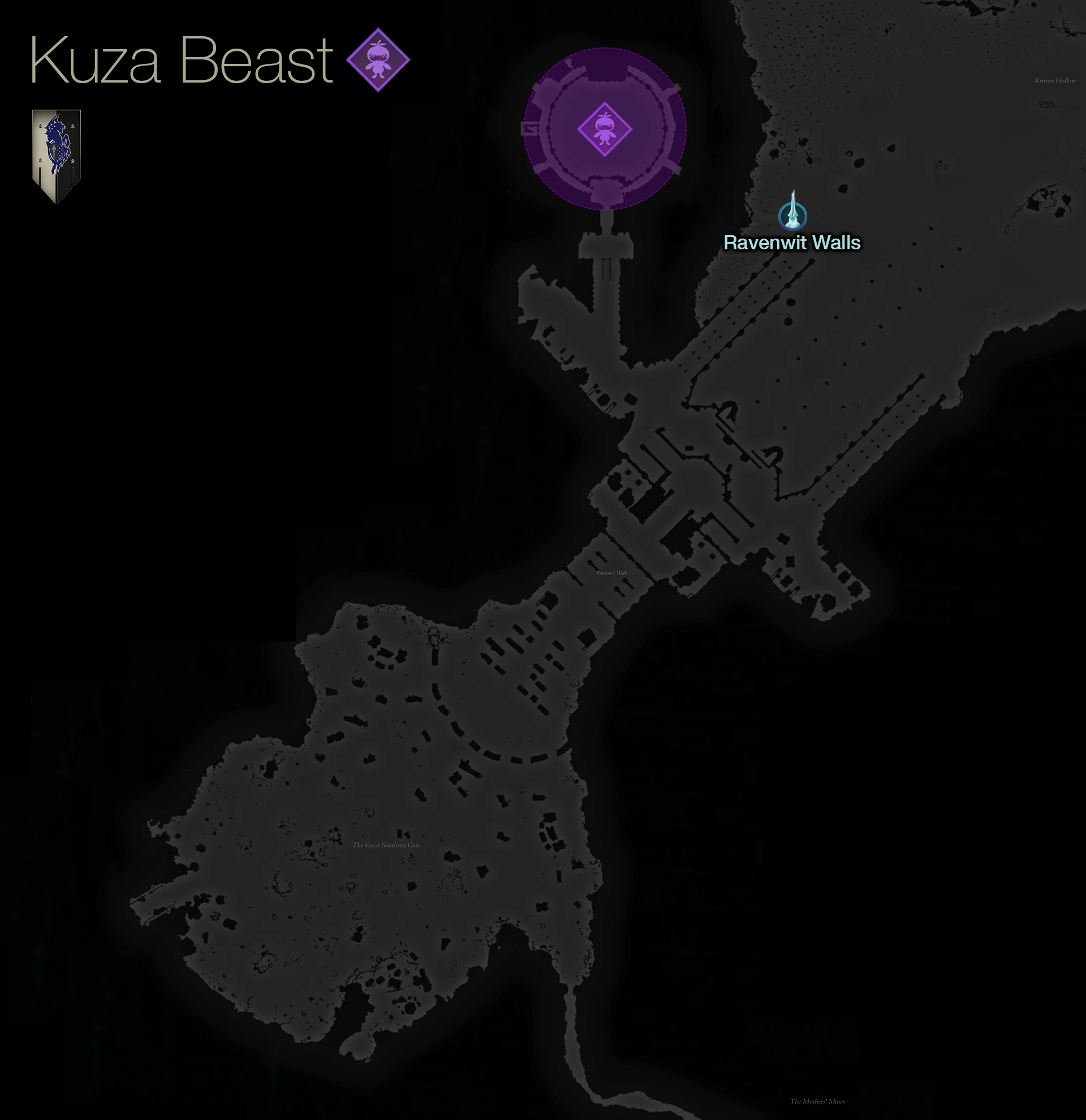 The Kuza Beast is located in the center of Balmung Dark and appears after you’ve located the last survivor with Dorys. Find the section of gate that’s busted open and make your way into the center of the ring to begin the fight.