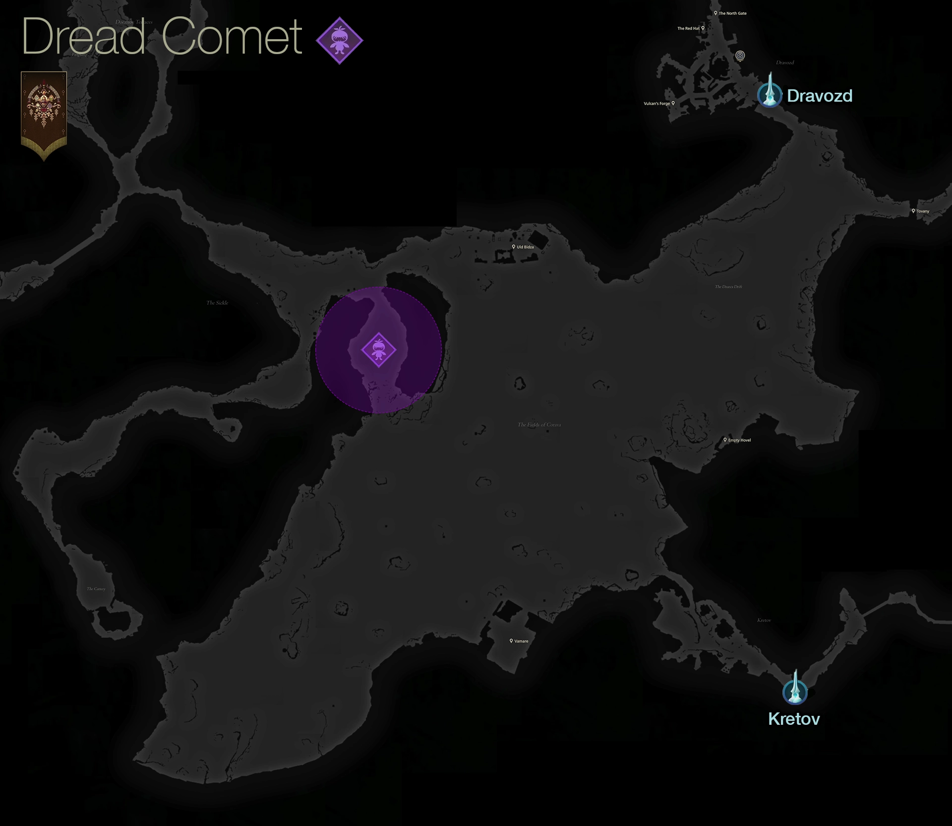 Travel to The Jaw or The Dalimil Obelisk and head south through the Sickle. If you’re already in the Fields of Corava, you may be closest to the Dravozd Obelisk in the northern section of the fields.