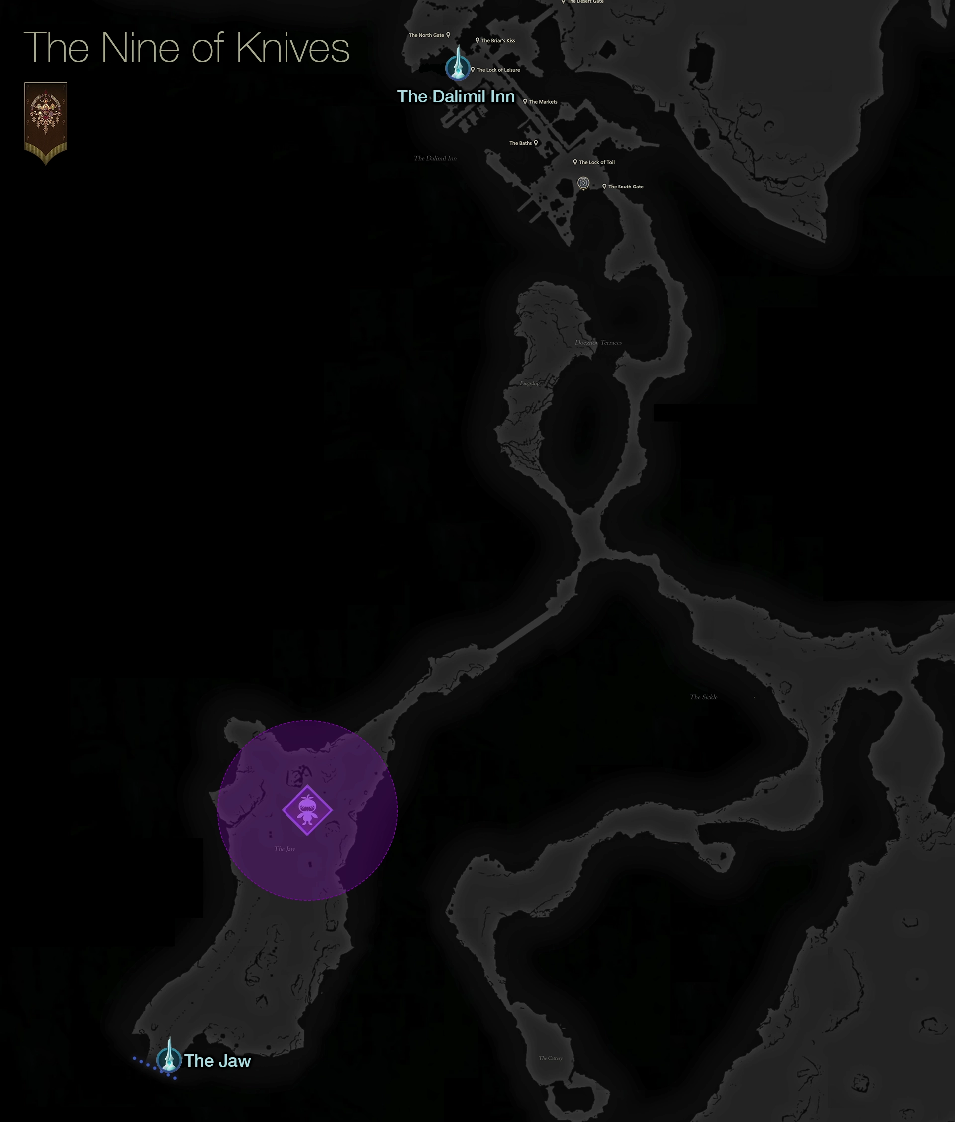 Travel to The Jaw Obelisk and follow the trail north. Note that this Notorious Mark blocks the pathway to the baker’s apprentice if you’re in the middle of completing the