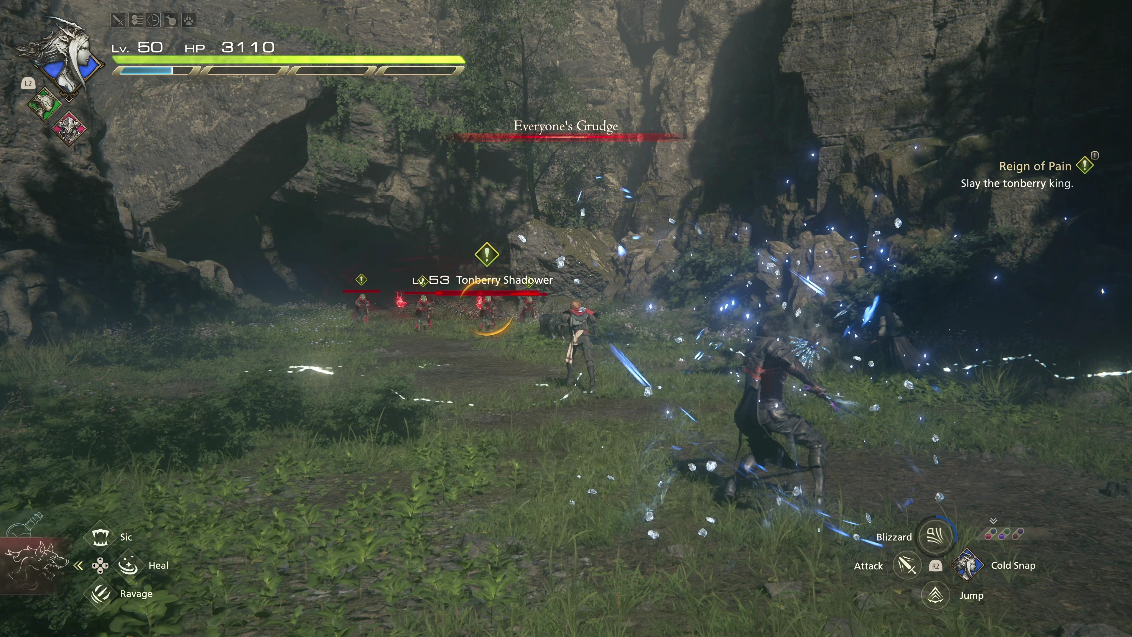- Everyone’s Grudge: Tonberry King will summon a bunch of “Tonberry Shadowers” at one end of the clearing, which will slowly begin walking towards Clive. If you let them get too close, they will initiate a devastating thrusting-style stab, which deals a ton of damage. Your best bet is to damage them from afar, either with ranged Eikonic Abilities or