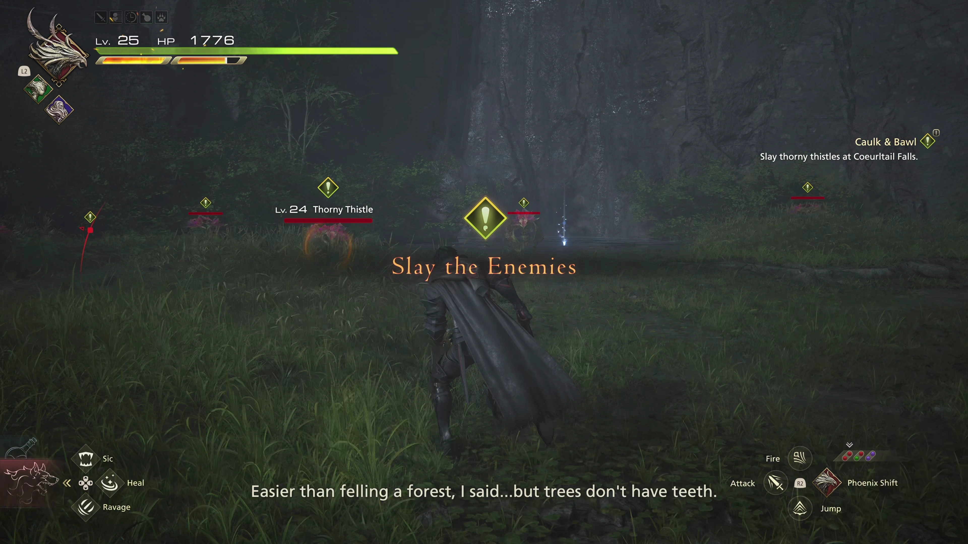 Travel to the Three Reeds Obelisk in Rosaria. Travel down the pathway a short distance before turning left into the large, swampy area near the cliffs. You can find the “Thorny Thistle” enemies you’re looking for near the waterfall, and they are very easy to defeat.