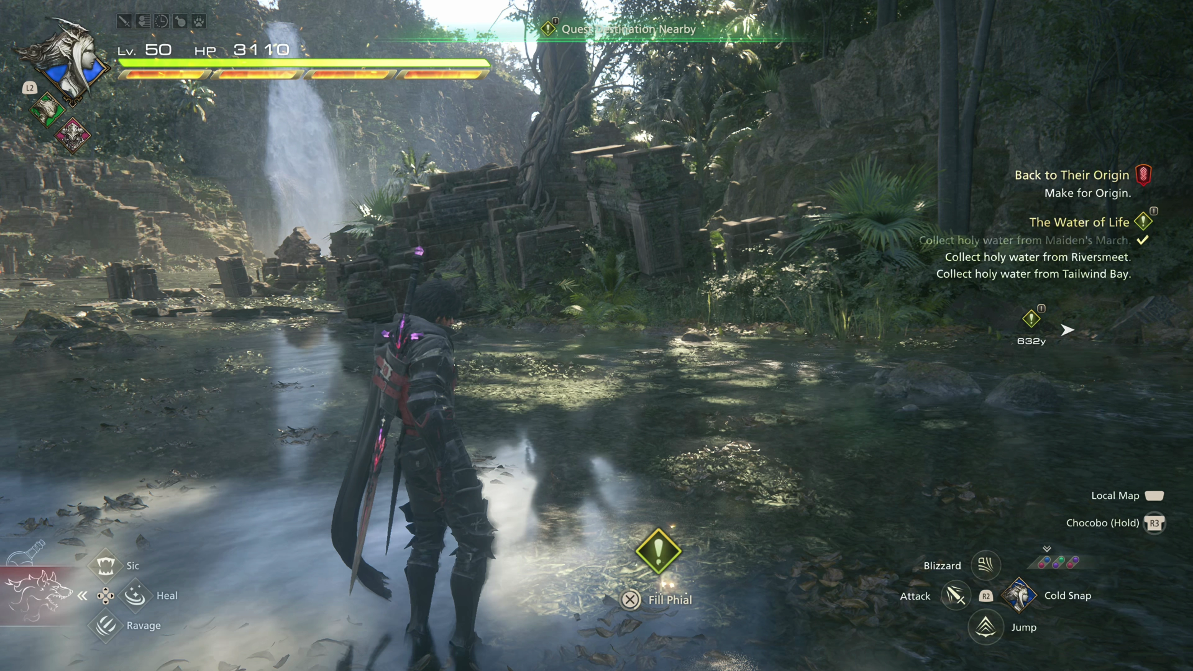 Next, warp to the Riversmeet Obelisk and head north into the Sunken Ruins to collect the next vial, which will be filled with