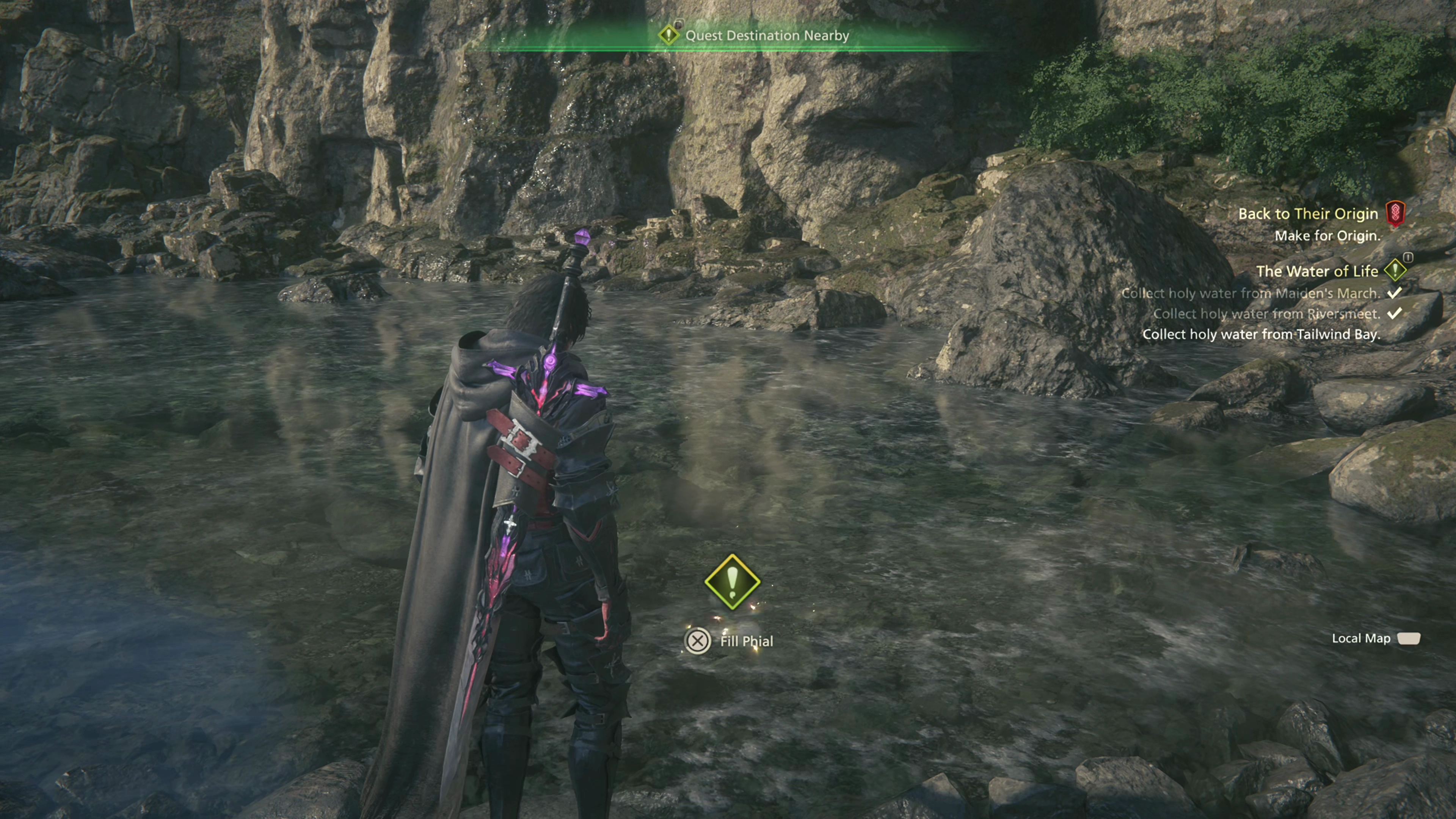 Examine the water nearby to fill the vial with Water of the Mountain. Don’t worry, though, as the other two vials are much easier to collect.