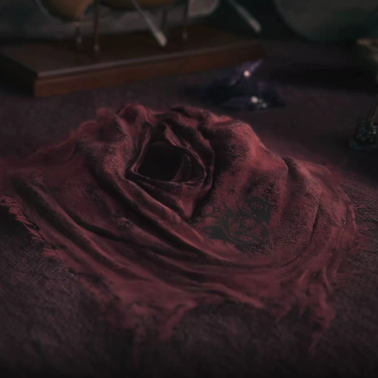 | “The emblem of the Crimson Caravans—porters of wide renown based in the market town of Boklad. It depicts a laden chocobo. After the death of her brother and confidant, Theodore, Eloise chose to continue the work they had begun together—freeing Bearers from slavery, just as she had freed him so many years before.” | Complete the |