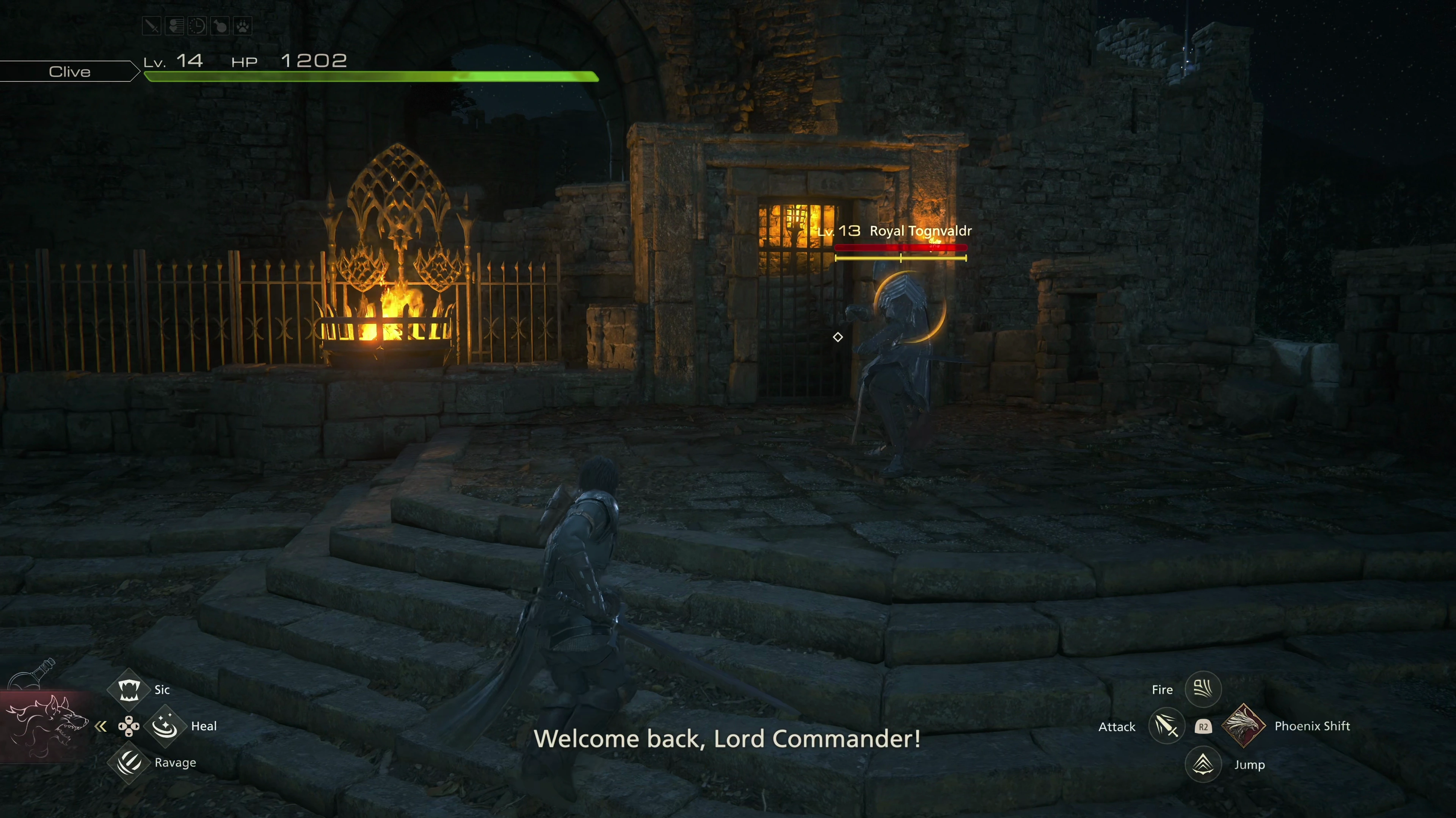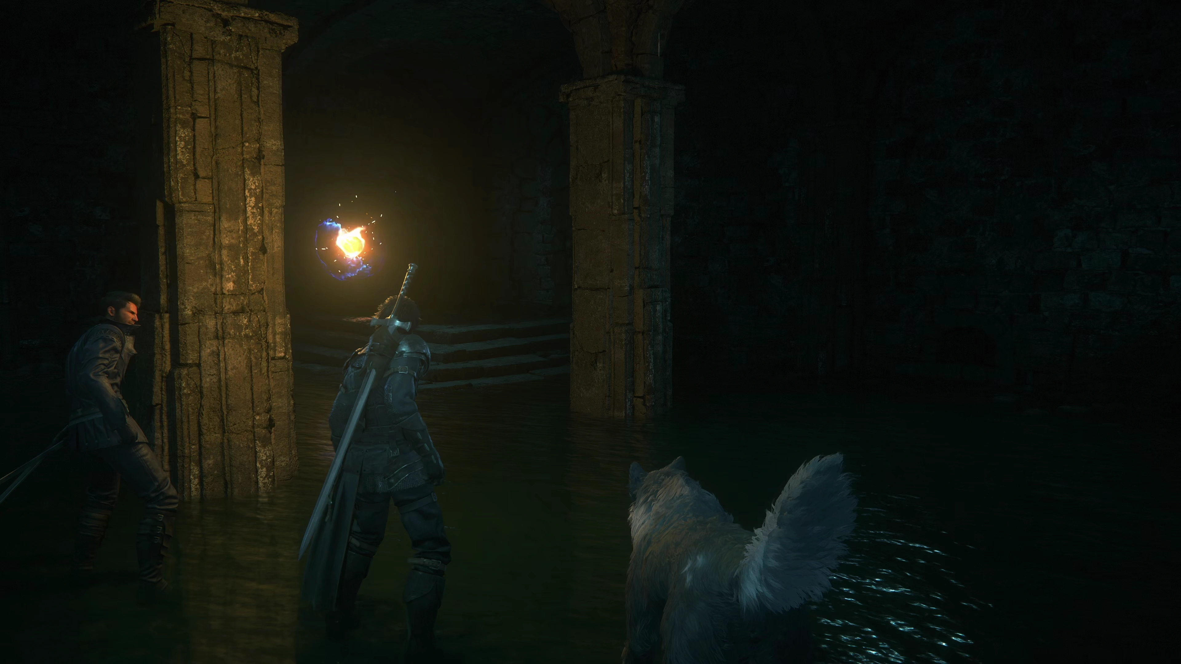 You will regain control of Clive inside Caer Norvent after he ignites a floating flame orb to help light up the dark pathways ahead. Cid and Torgal will accompany Clive for most of the upcoming sections.