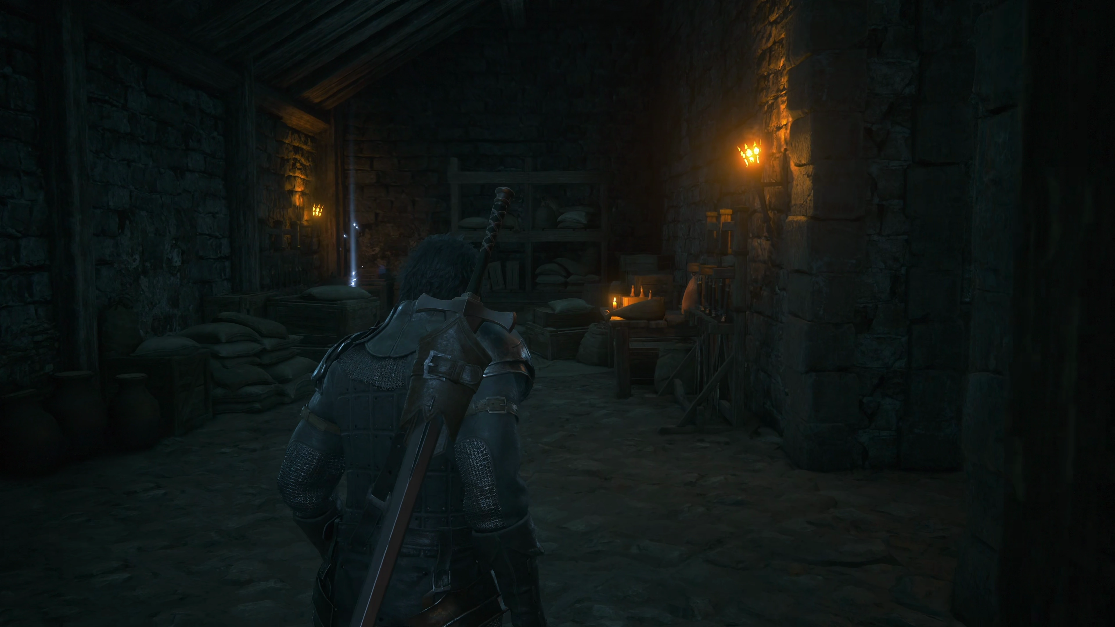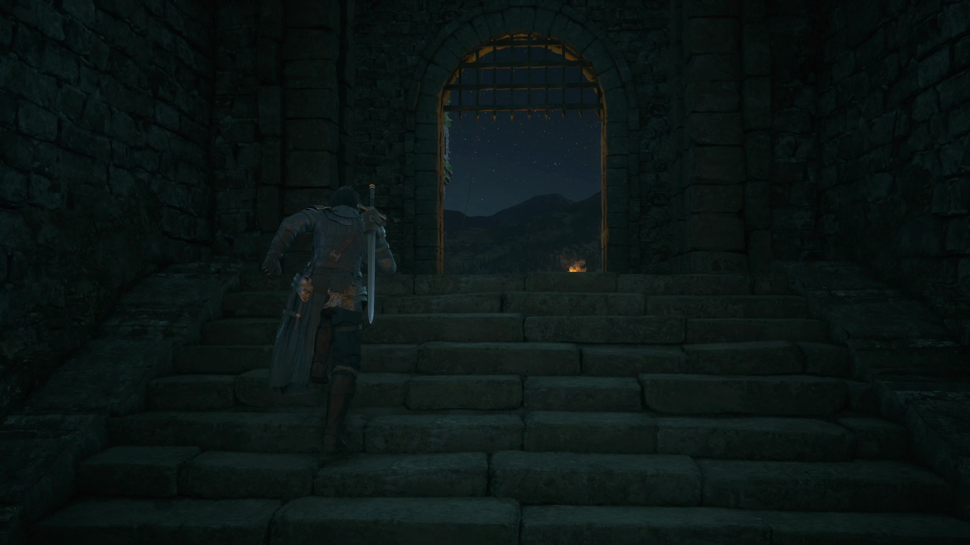 Go through the doorway and proceed down the steps ahead to see and pick up the Glimmer that you couldn’t before. Continue climbing the tower; you’ll have to defeat a small and a large group of guards along the way, and, after that, you’ll come across your second Royal Tognvaldr with two Royal Mastiffs with him. This one can be a bit more challenging to defeat due to the confined space, which makes it harder to dodge attacks.