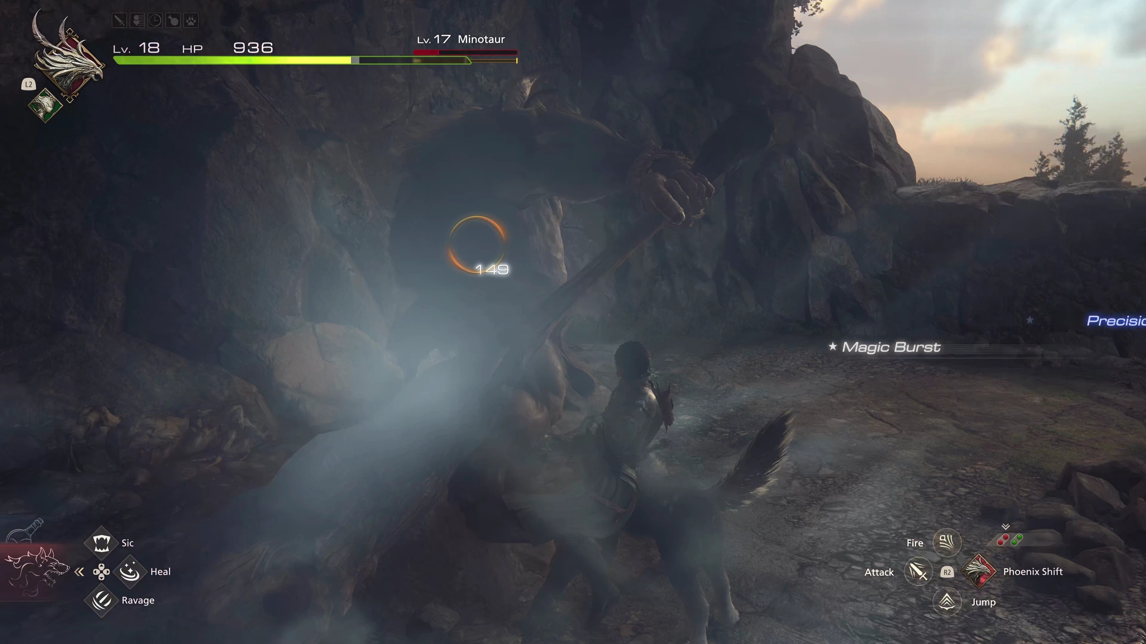 Swap your Eikonic Ability Set over to your multi-target set if you have one, and proceed down the pathway. Grab the Glimmer and drop down the cliff towards the banks of the stream. Defeat the group of five Black Widows and jump across the river. Keep moving forward until a short cutscene takes place ahead of your next fight against a mini-boss called “Minotaur.”