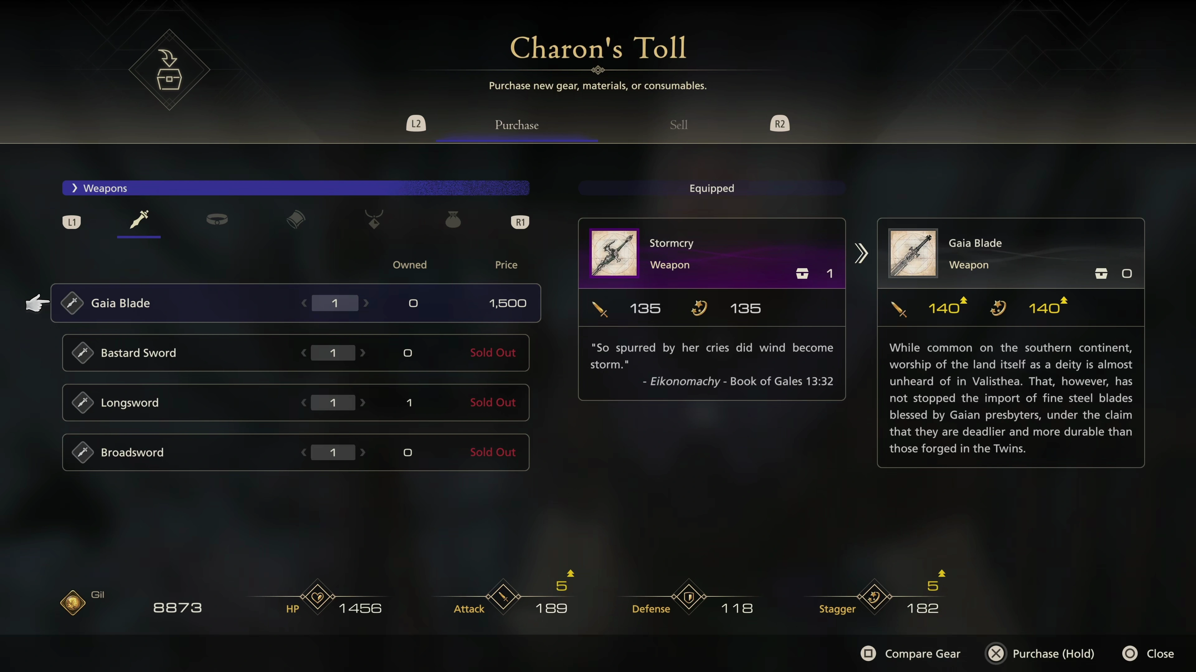 Speak to Charon to complete the next Main Scenario Quest task and, while you’re there, buy the new weapon she is selling.