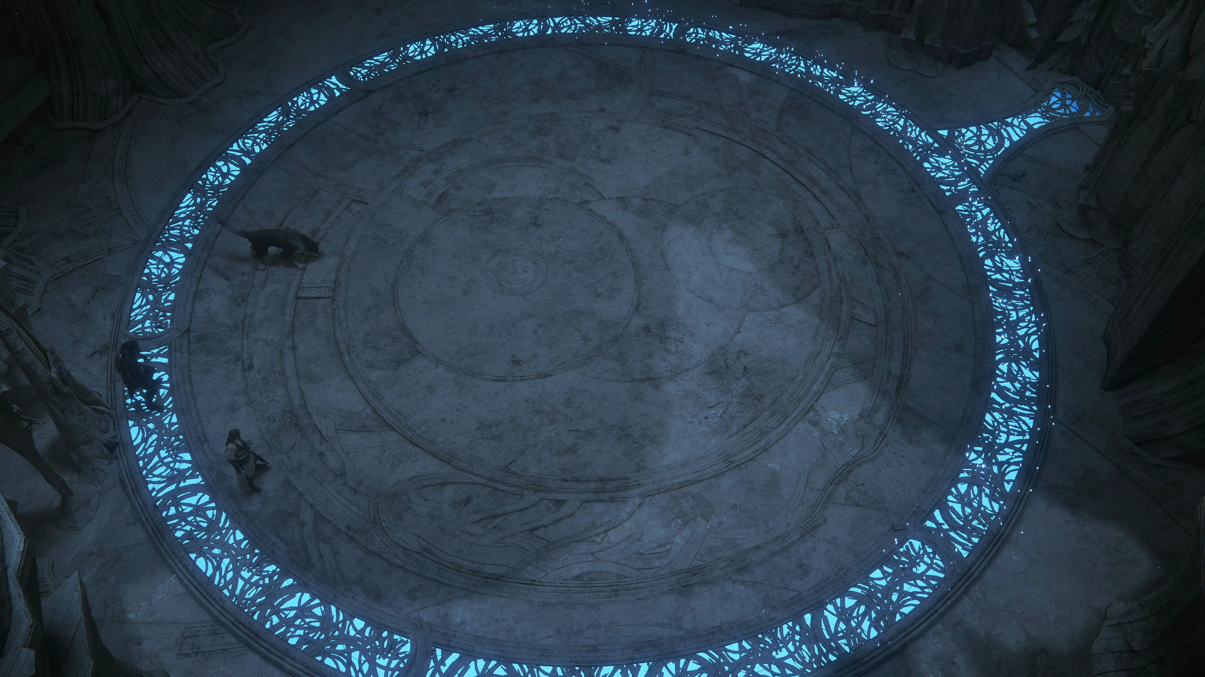 There are now two open doorways leading away from the platform with some Glimmer spots along the ramps. Go into both of these rooms, defeat the enemies inside, and activate the ruin structures inside. Head back down to the large, central platform and activate the last ruin structure in the center. This will trigger a walkway to rise from the depths, allowing Cid/Jill/Torgal to get to the next area.