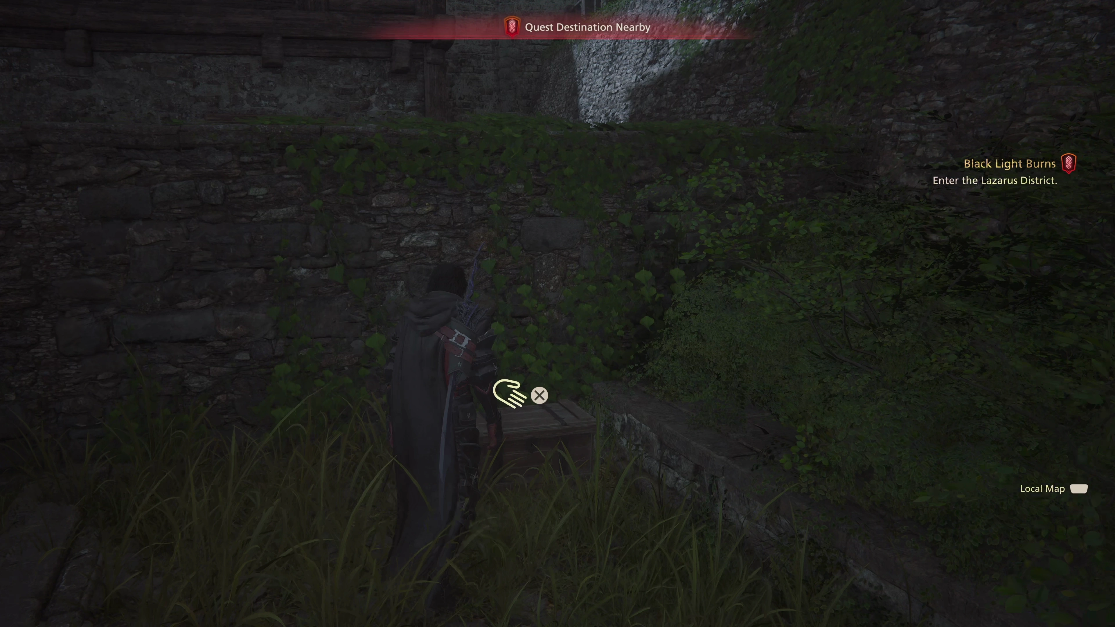 Turn around and travel towards the Main Scenario Quest Marker , which leads towards the “Lazarus District” area of the map. When you first enter the town, a pathway on the left side of the screen will lead up to an open area. There is a treasure coffer on the back wall of this area that contains ten spools of