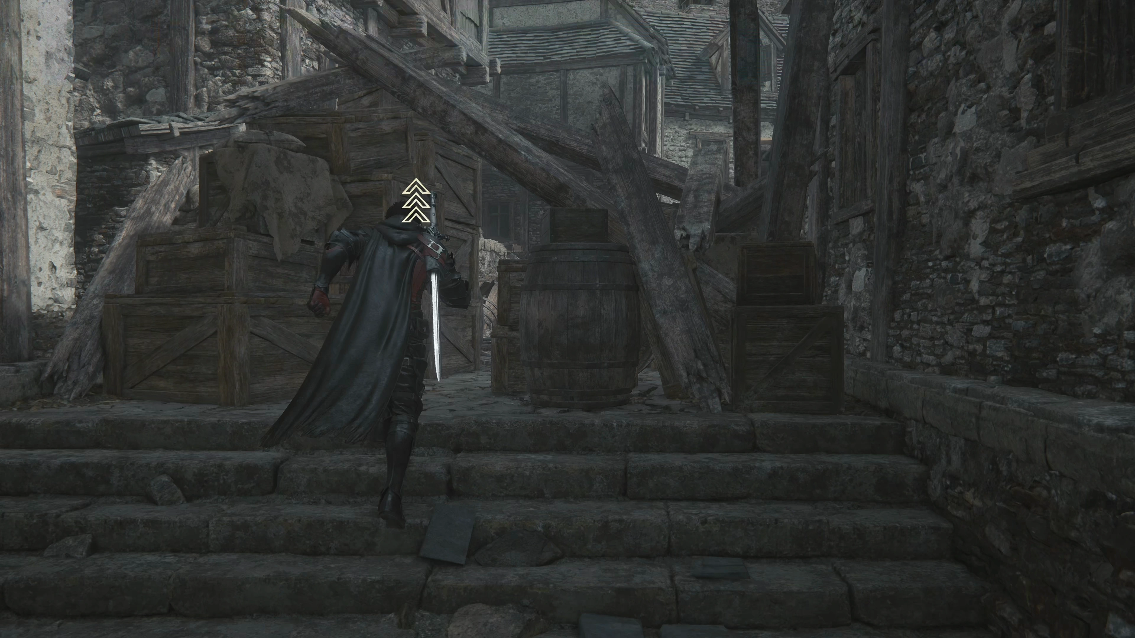 Clive can climb the wall behind where the Stone Scepter was standing to get around the blockade of barrels blocking the staircase beside it. Keep climbing the stairs and look for another treasure coffer on the left side of the screen that contains the The Will of Lightning (Pile Drive) accessory.
