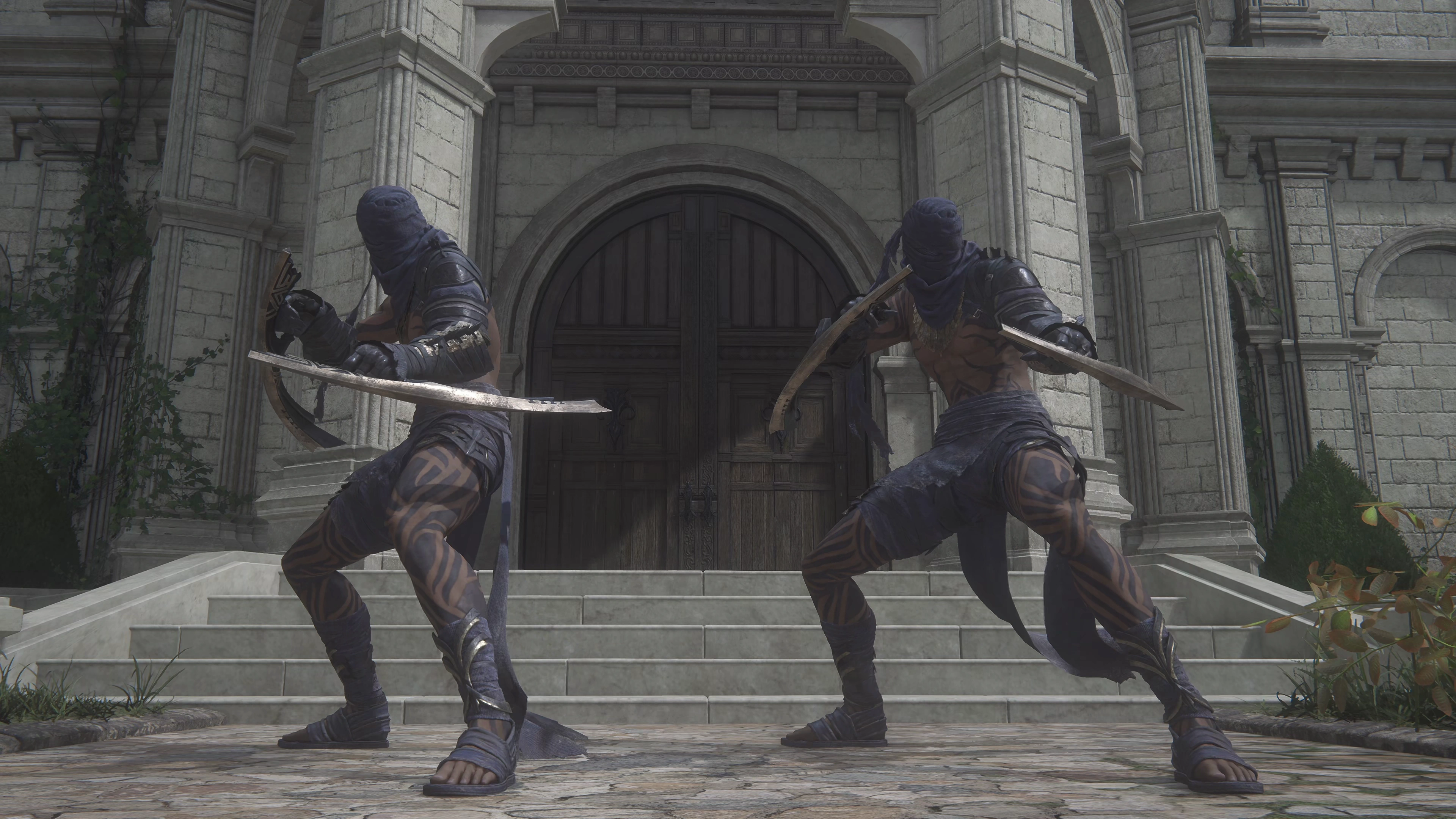 There is a large group of Stone Scimitars, Stone Commandants, and Stone Scepters to deal with when you first enter the castle courtyard. Just as before, focus on defeating the Scepters first to stop them from casting Protect on their allies. You will need to use an Eikonic Ability or other magic ability (such as Charged Magic or