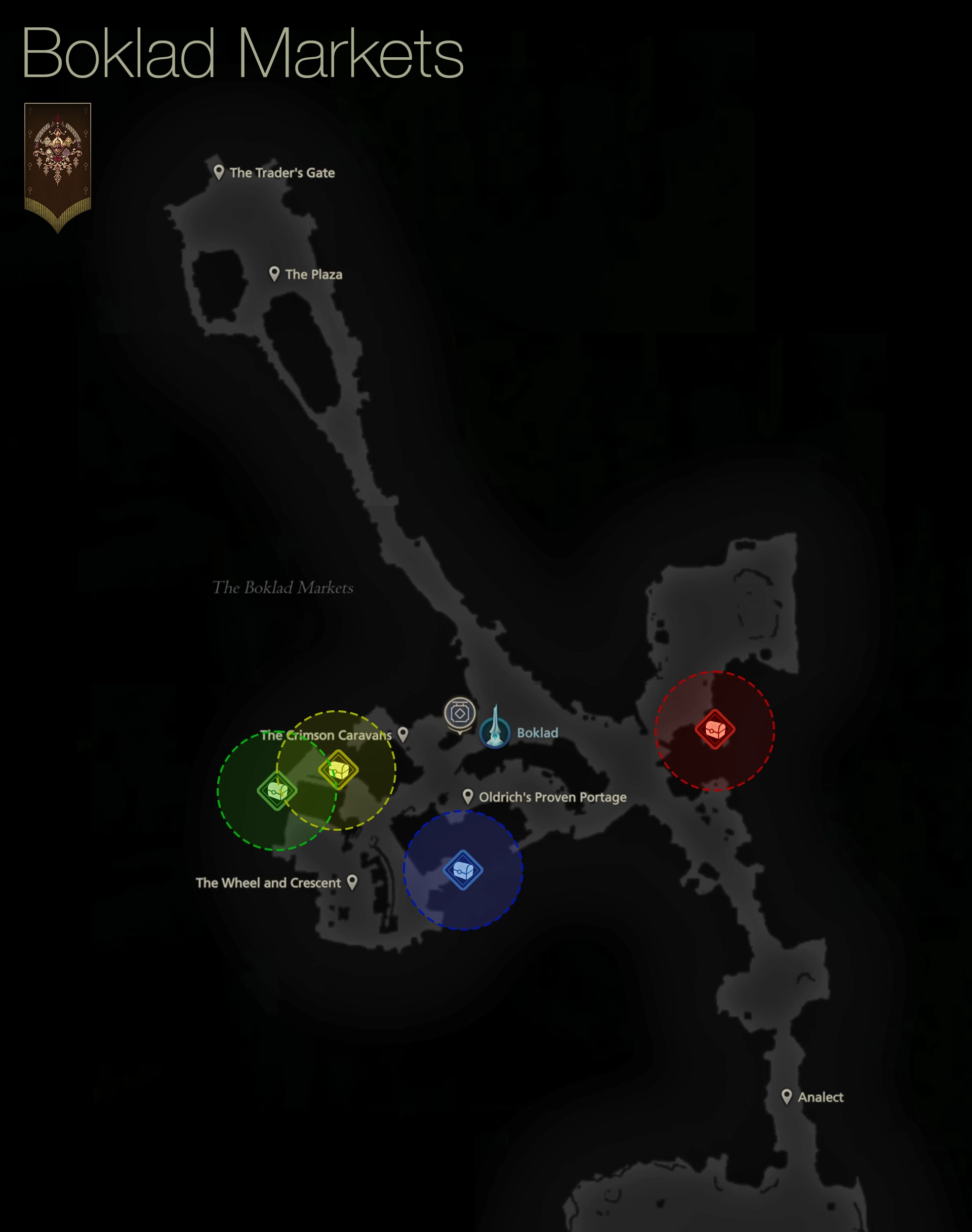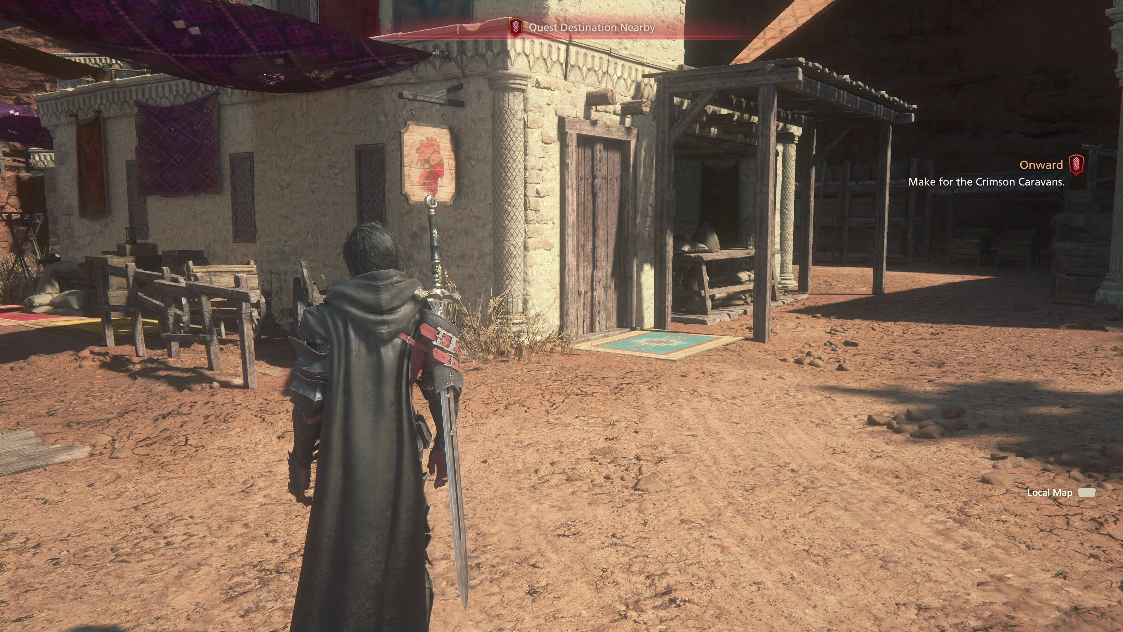 The next stop is the “Crimson Caravans,” which is marked with a red chocobo sign out front. You can find it back in the main section of Boklad, where most of the treasure coffers were located. Lady Eloise will provide you with The Crimson Collar, which will help identify you to the Boklad locals as a friend. We then have to complete a Subquest…