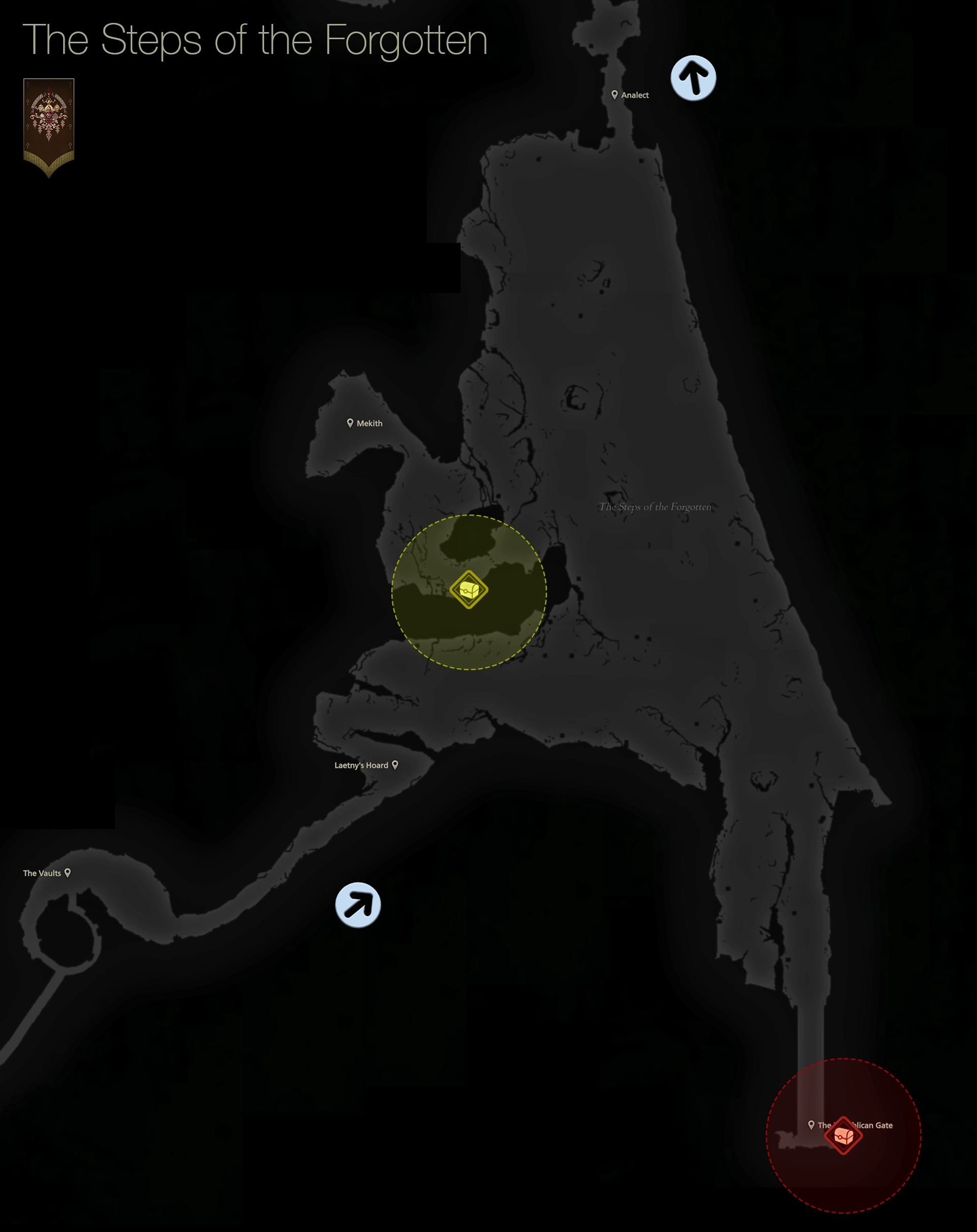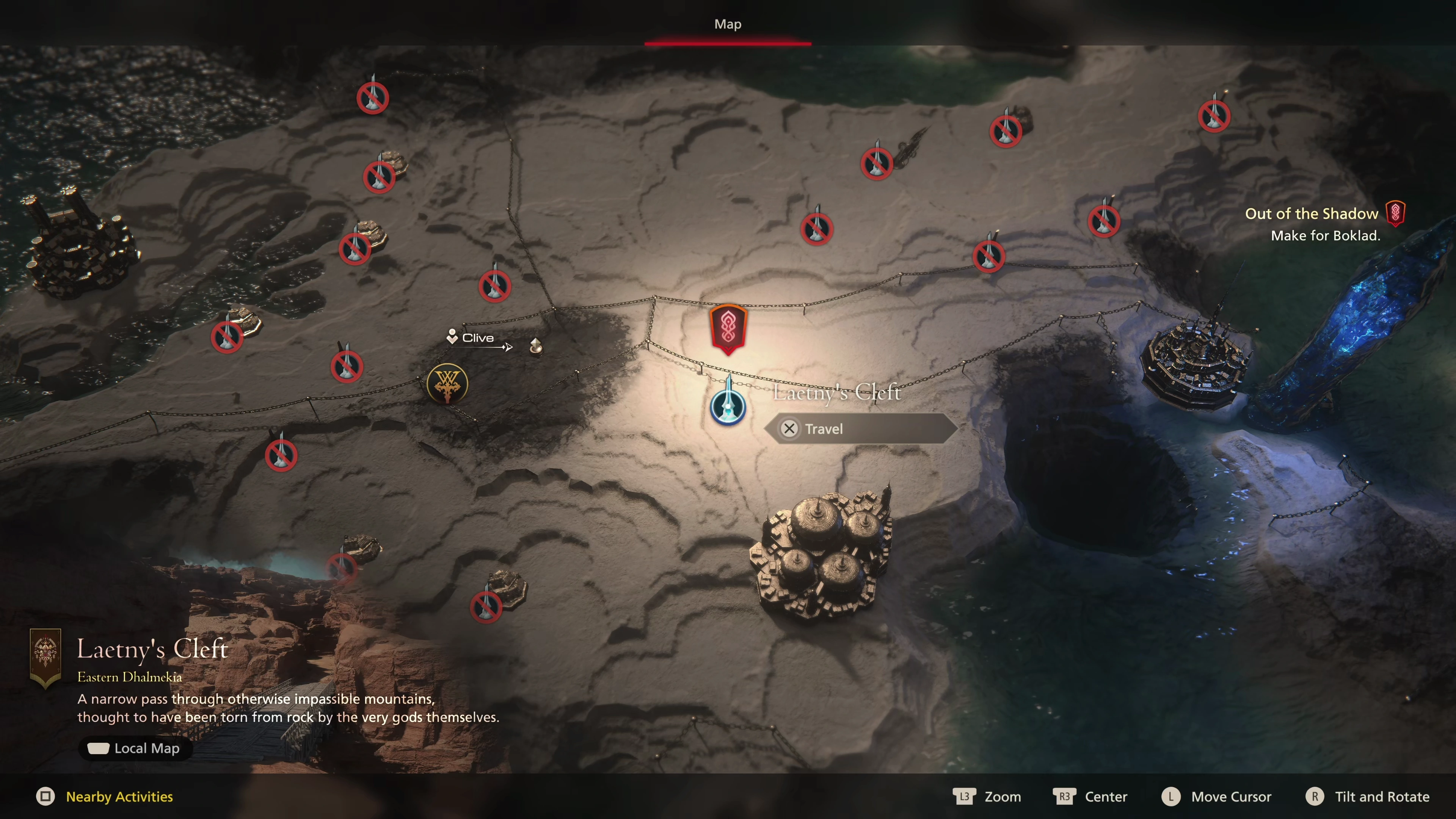 From the World Map, select the Laetny’s Cleft Obelisk in the eastern section of Dhalmekia to continue.