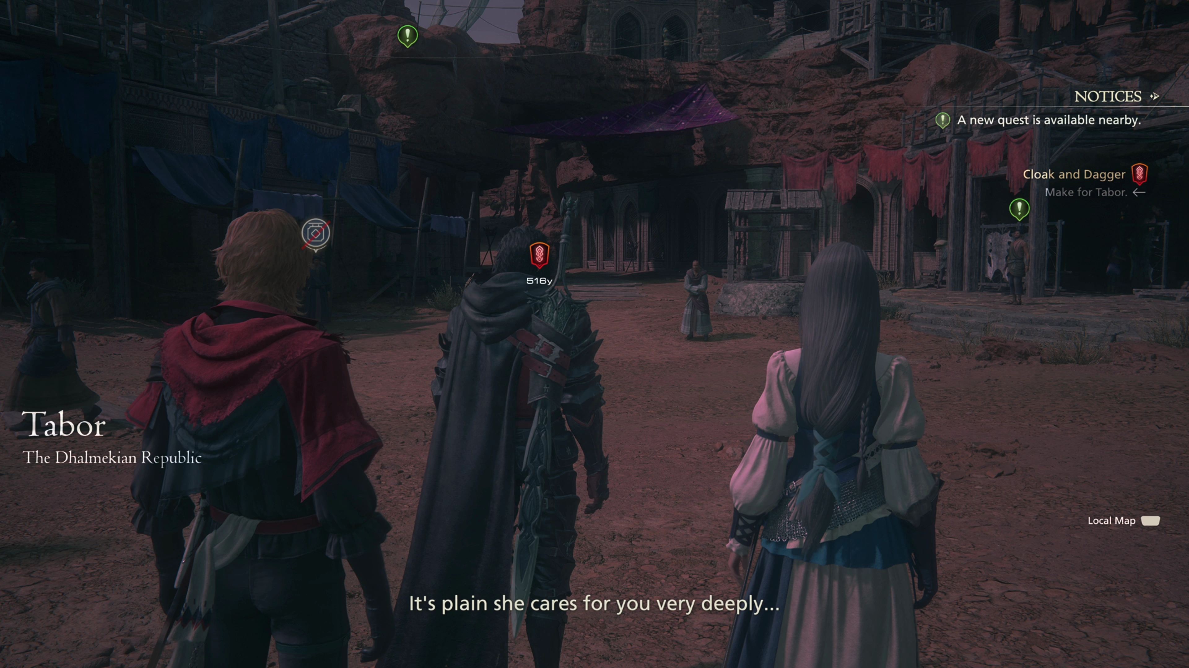 As soon as you exit the building back out into Tabor, the Main Scenario Quest Marker will move to your next destination. However, there are two new Optional Quests available here in Tabor.